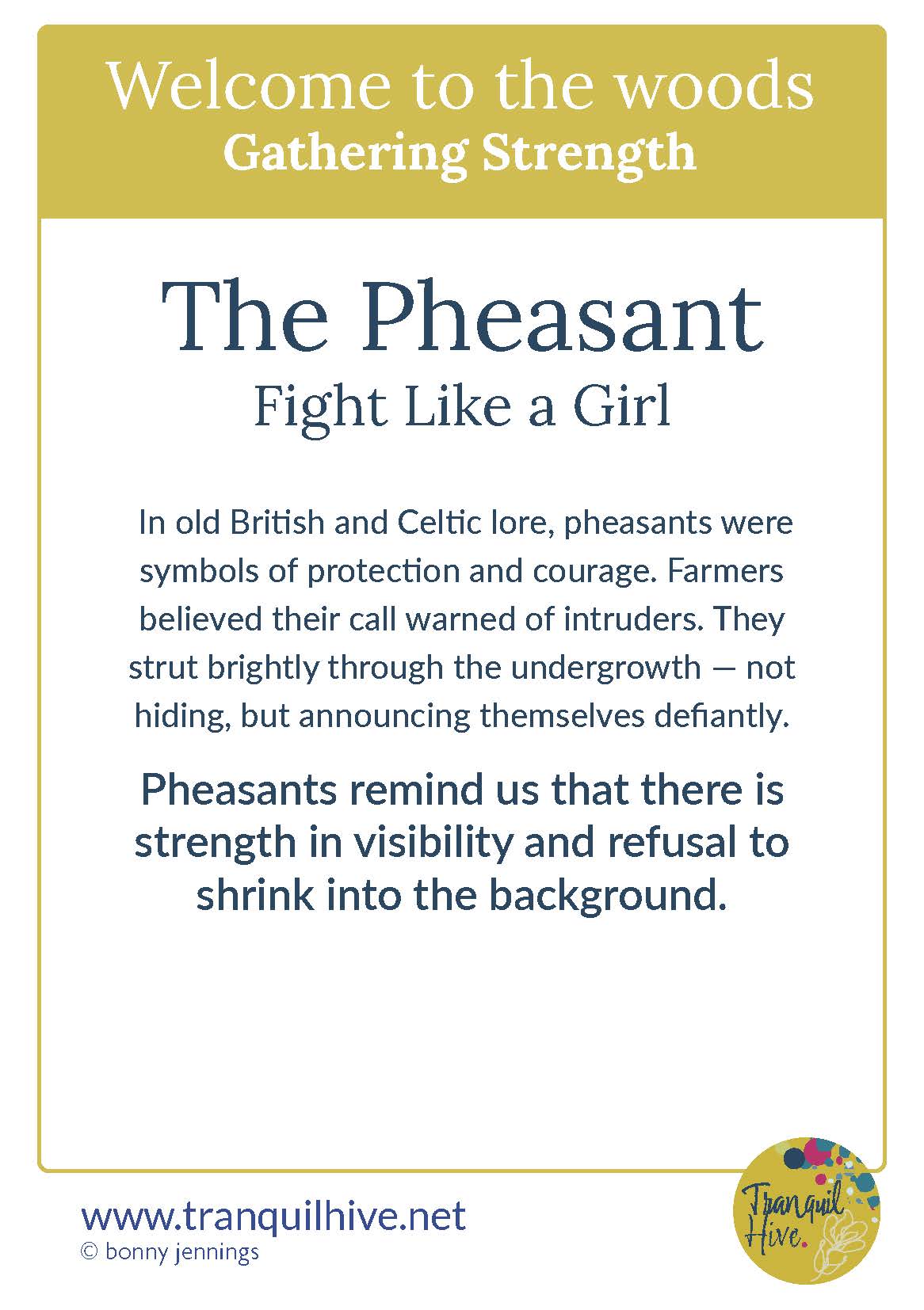 A bright-feathered rallying cry for those who are loud and flamboyant.The feathers of pheasants once lined warrior cloaks, a shimmer of defiance against dull steel..