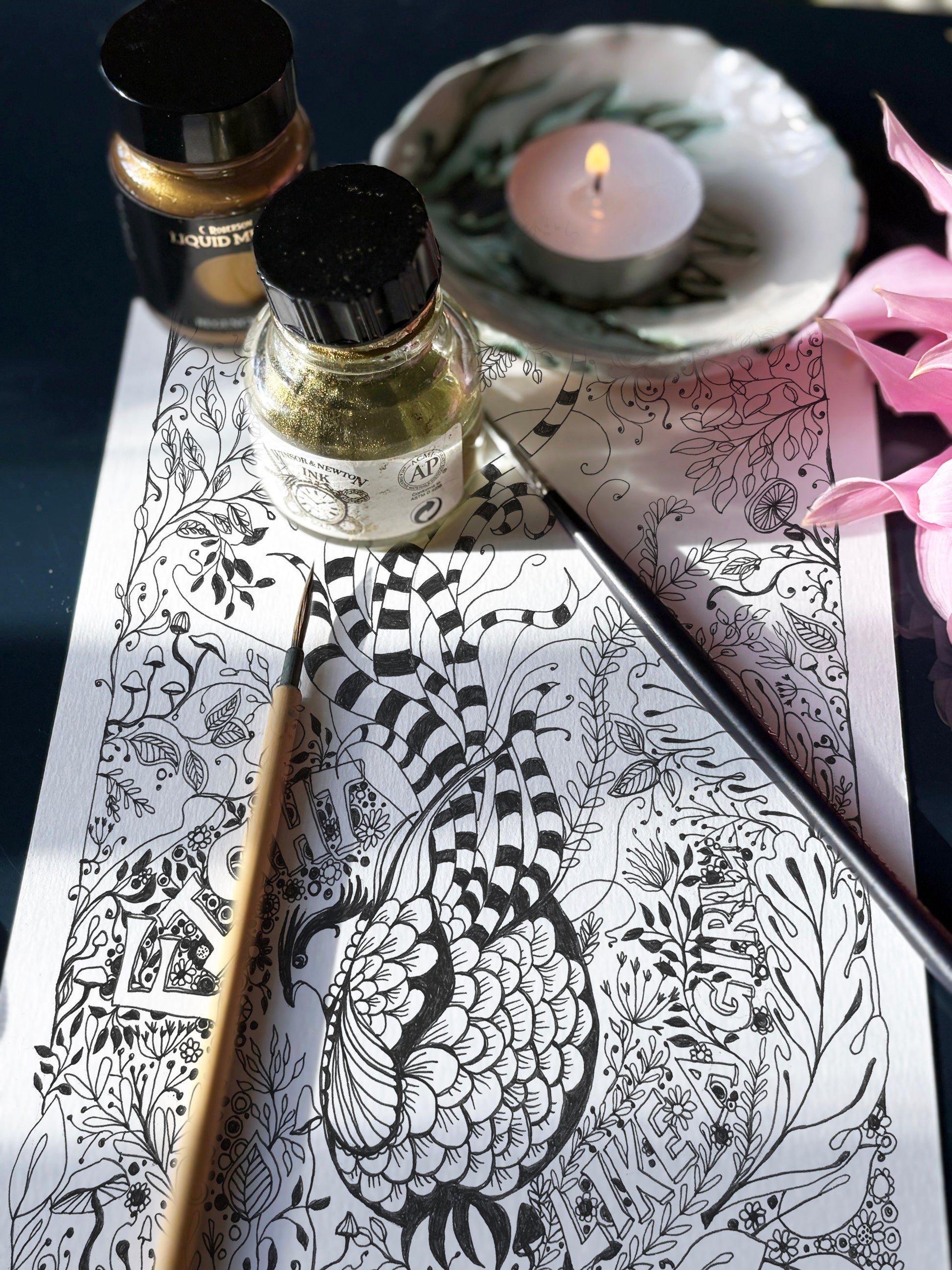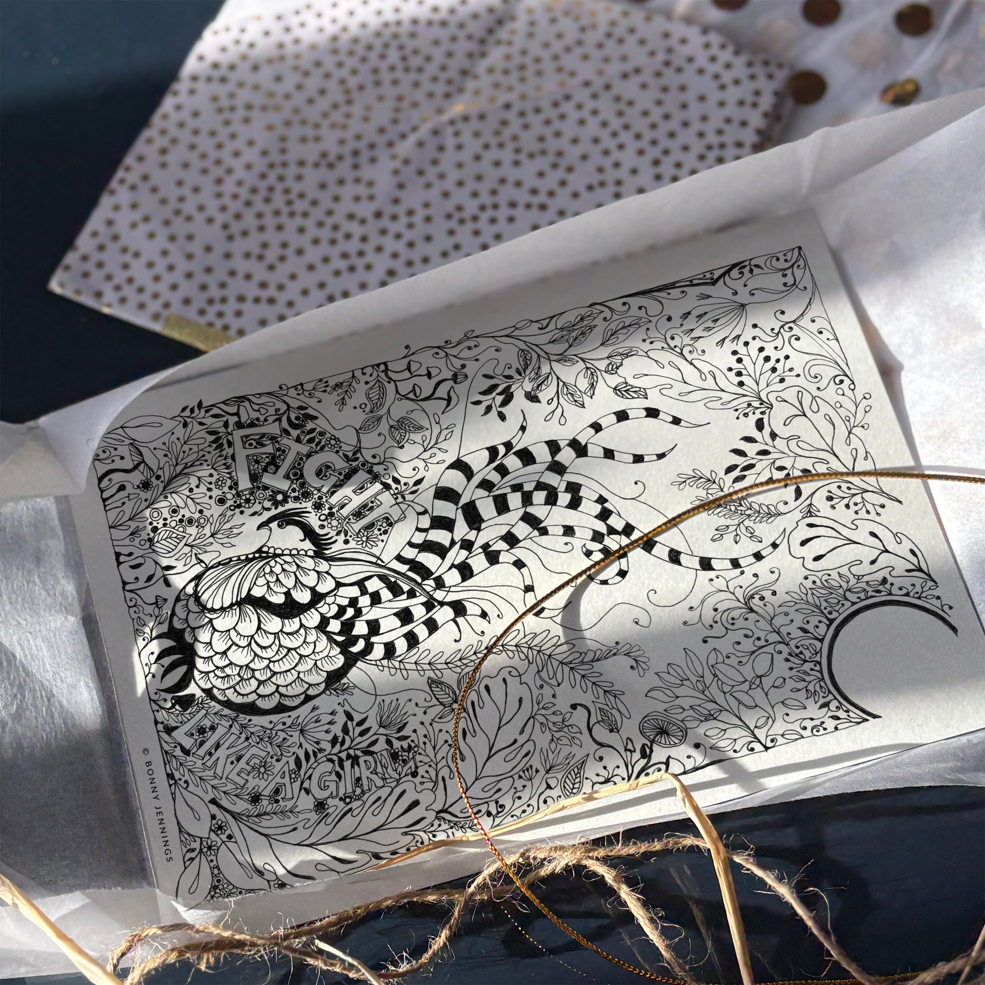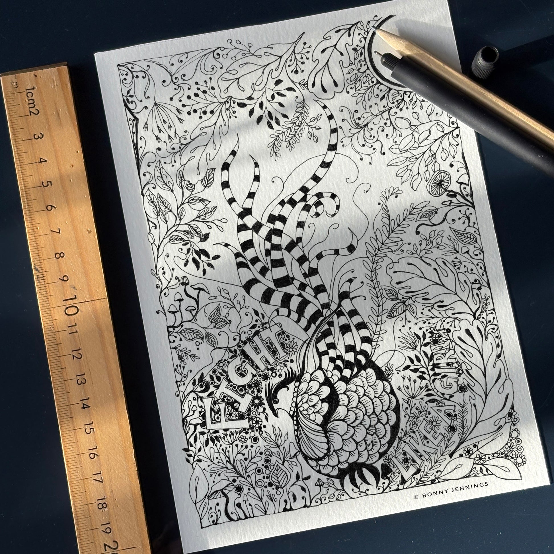 Intricate pen-and-ink illustration printed beautifully on matte art paper.