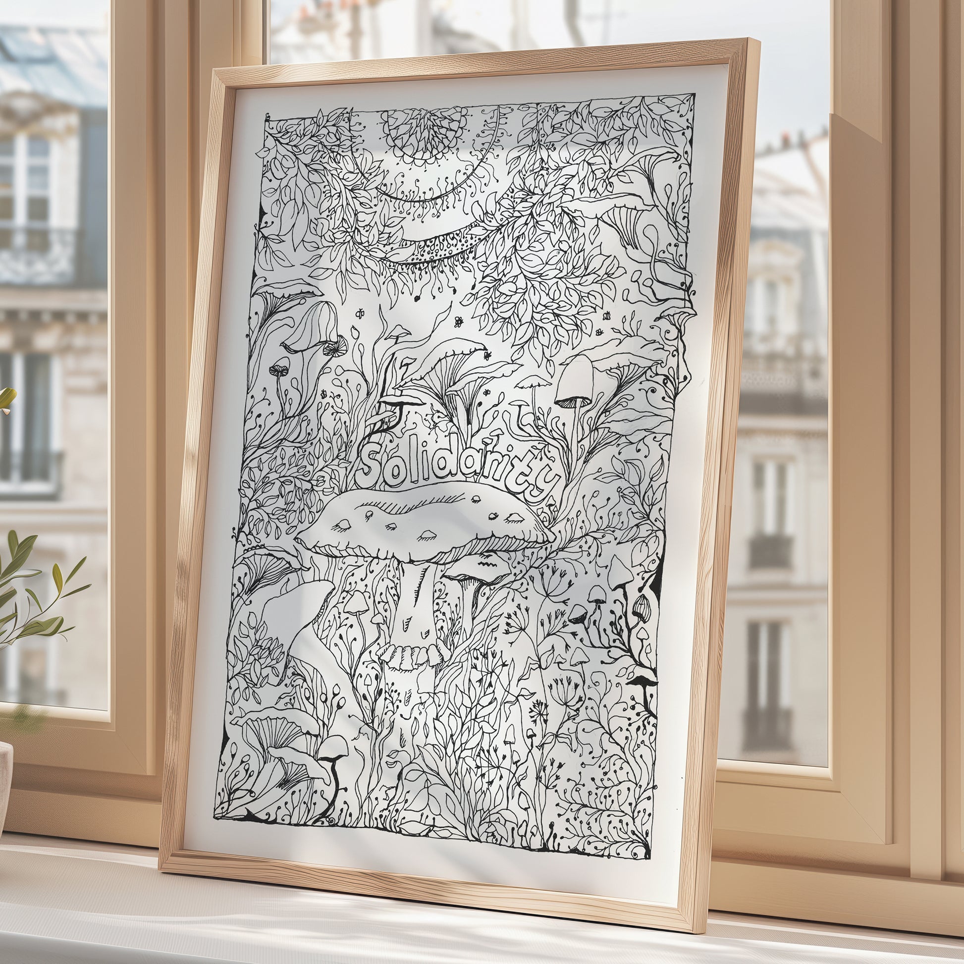 'Solidarity' Woodland Mushroom, Black & White A3 Art Print